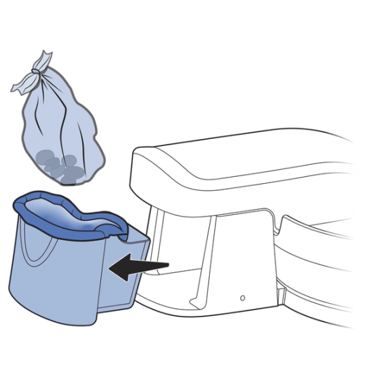 Slide the waste bin out of the litter box. Tie the waste bag closed and place it in the trash.