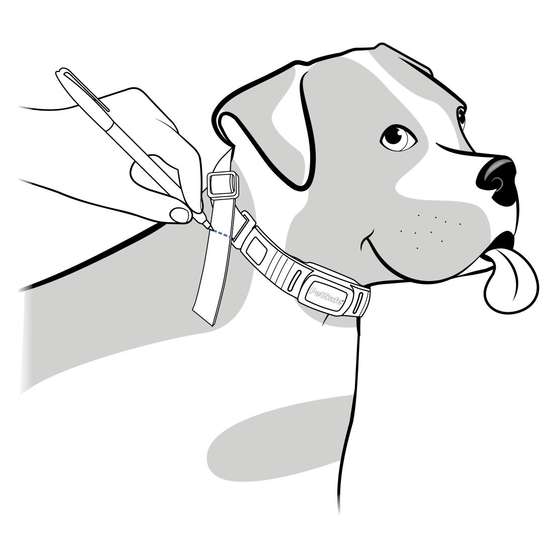 - The collar strap needs to be tight enough that the collar does not move if the pet shakes or moves. Test the fit by trying to gently shift the collar back and forth.