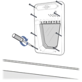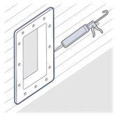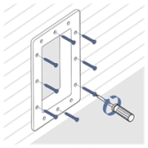 Secure the exterior frame with four Phillips head wood screws, one in each corner. Additional tools or hardware may be needed depending on the exterior material.