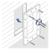 Secure the exterior frame with four Phillips head wood screws, one in each corner. Additional tools or hardware may be needed depending on the exterior material.