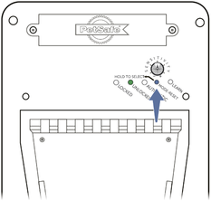 Press and hold the Learn button until the green indicator light begins to flash, then release.
