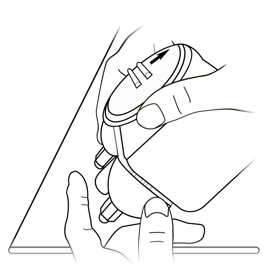 Hold the collar at a 45° degree angle so the contact and sensor probes all contact the cutting board.