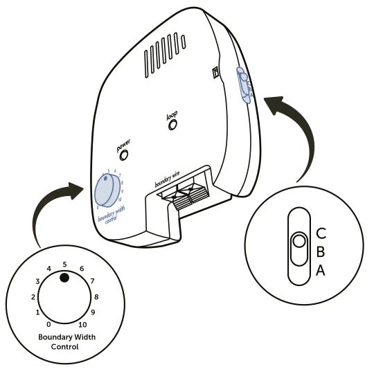 - If you have more than 2400 feet of wire you would use setting A. 2400 feet of wire is used to contain 8 acres of property with a single loop or 4 acres with a double loop.