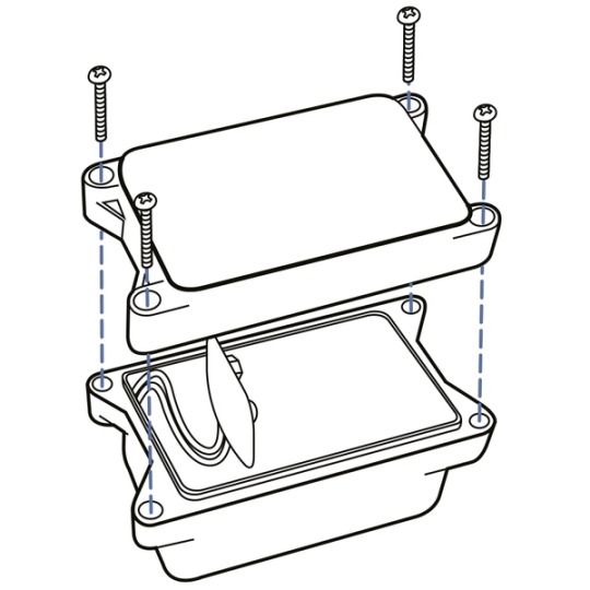 Replace the collar lid and four screws. Screws only need to be hand tight. Over tightening may cause the housing to crack.
